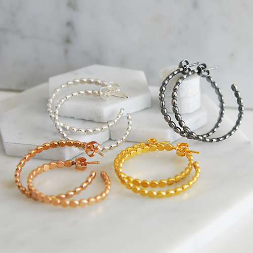 Oksiderte creoler i flatvalset kuletråd. Diameter ca. 35mm.